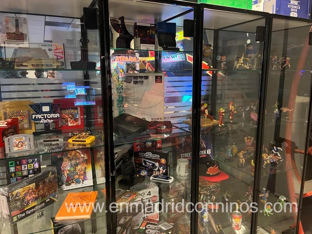 En Factoría Retro, encontrarás pequeñas vitrinas con exposiciones que te permitirán revivir la nostalgia de los videojuegos clásicos. Estas vitrinas albergan una colección de objetos que incluyen consolas antiguas como la Game Boy, teclados y mandos de las primeras generaciones, y figuras que representan a los personajes más icónicos de la época. Aunque no es un museo tradicional, el espacio está lleno de recuerdos de los años 70, 80 y 90, transportándote a los orígenes de los videojuegos.
